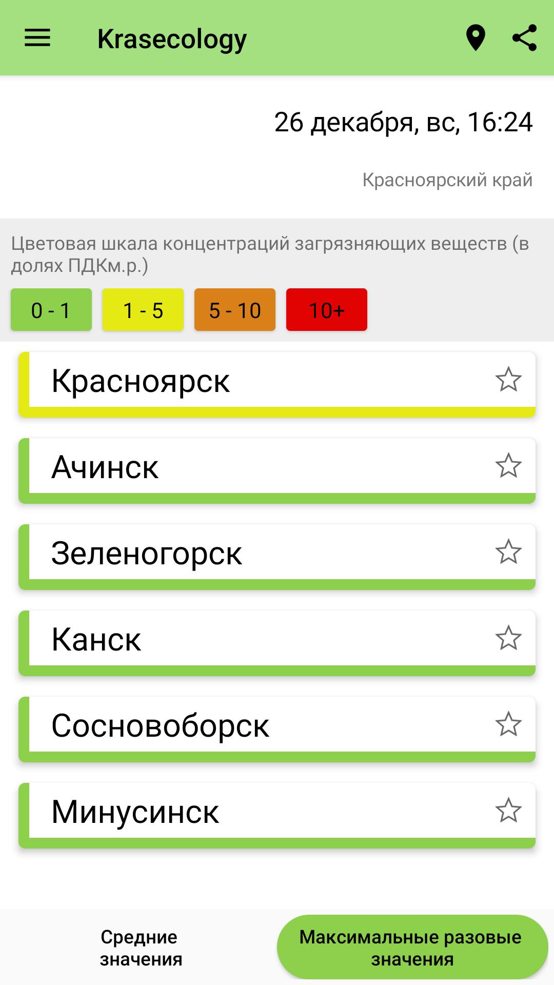 Krasecology (Krsekolodzhi)是针对Krasnoyarsk领土的自然管理和环境保护实施措施的官方应用。使用我们的应用程序,您可以在Krasnoyarsk领土城市中接收有关空气状况的当前数据。数据不断来自位于Krasnoyarsk,Achinsk和Zelenogorsk的自动观察站。
