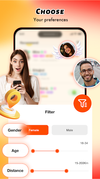 用简单的过滤器缩小搜索范围,以找到分享您的爱好和喜好的人。