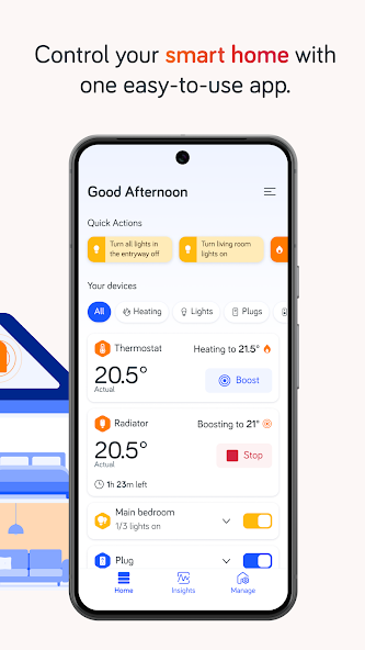 •使用智能Hive散热器阀来增强控制,并通过切勿加热不使用的房间来节省。