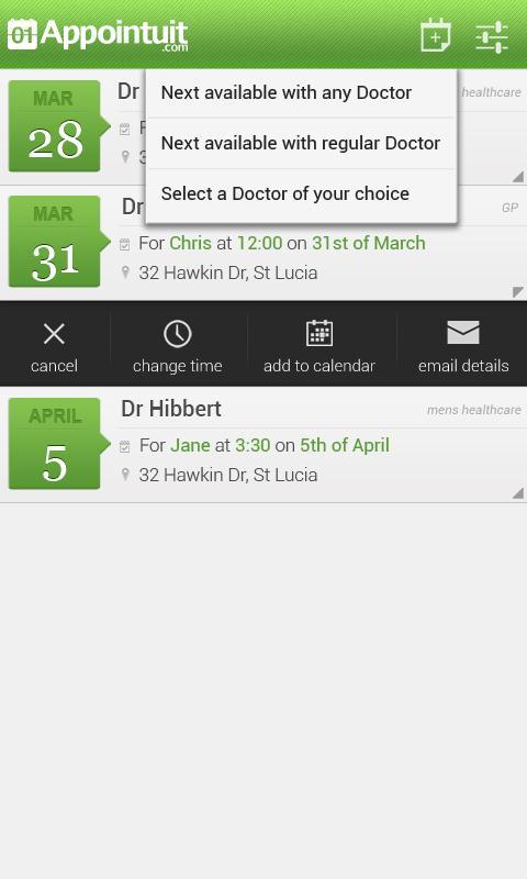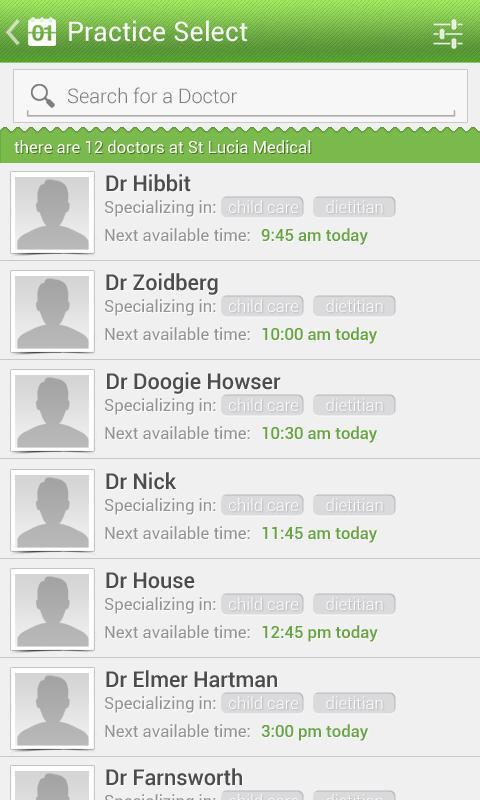 - 能够与您的普通医生,下一个可用的医生快速预订或选择任何医生