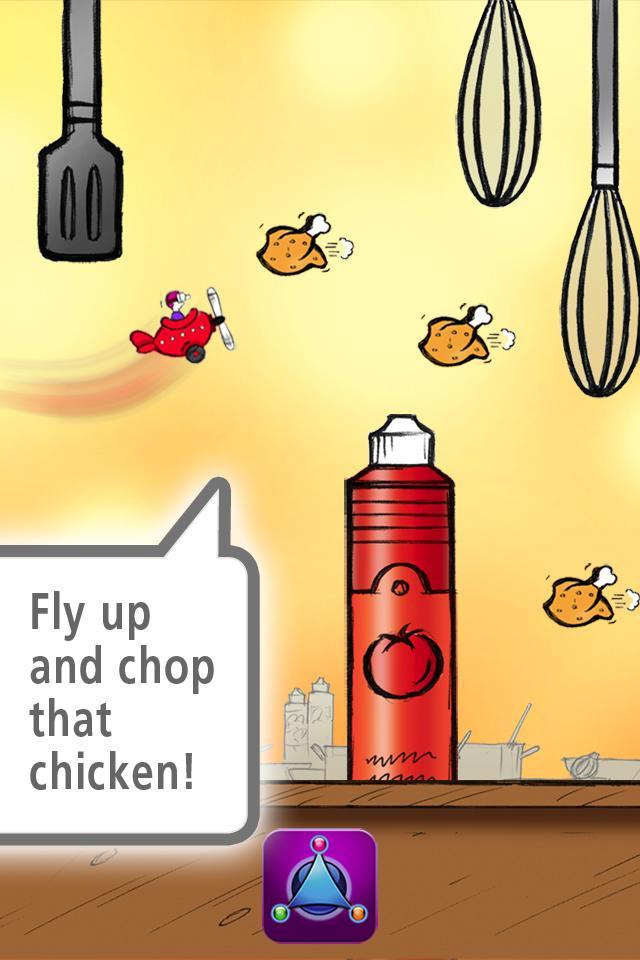 在翻牌飞机上飞过厨房的天空,将尽可能多的鸡肉切成鸡翅。