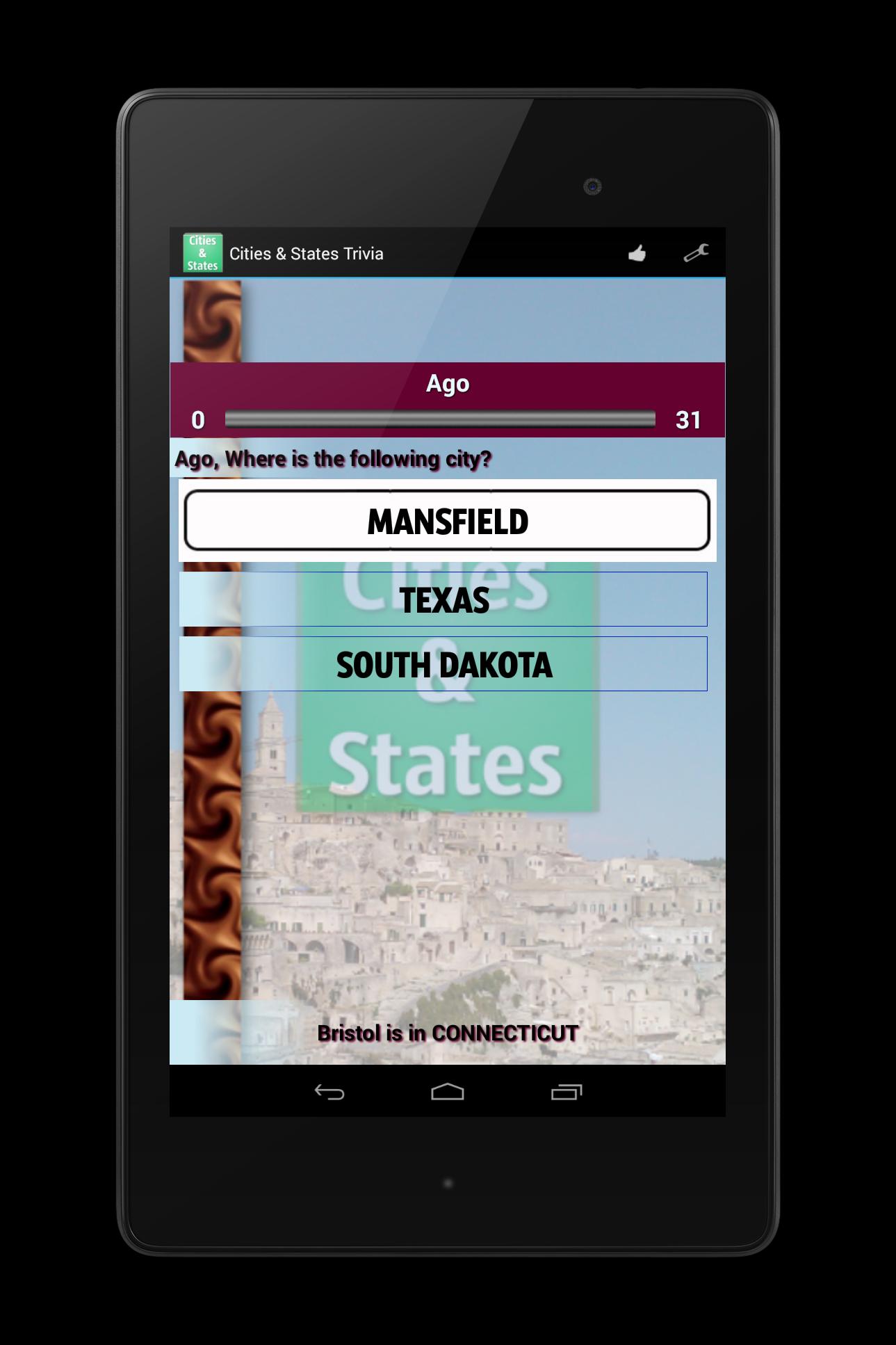 Trivia App:将城市与相应的省,地区或州联系起来。