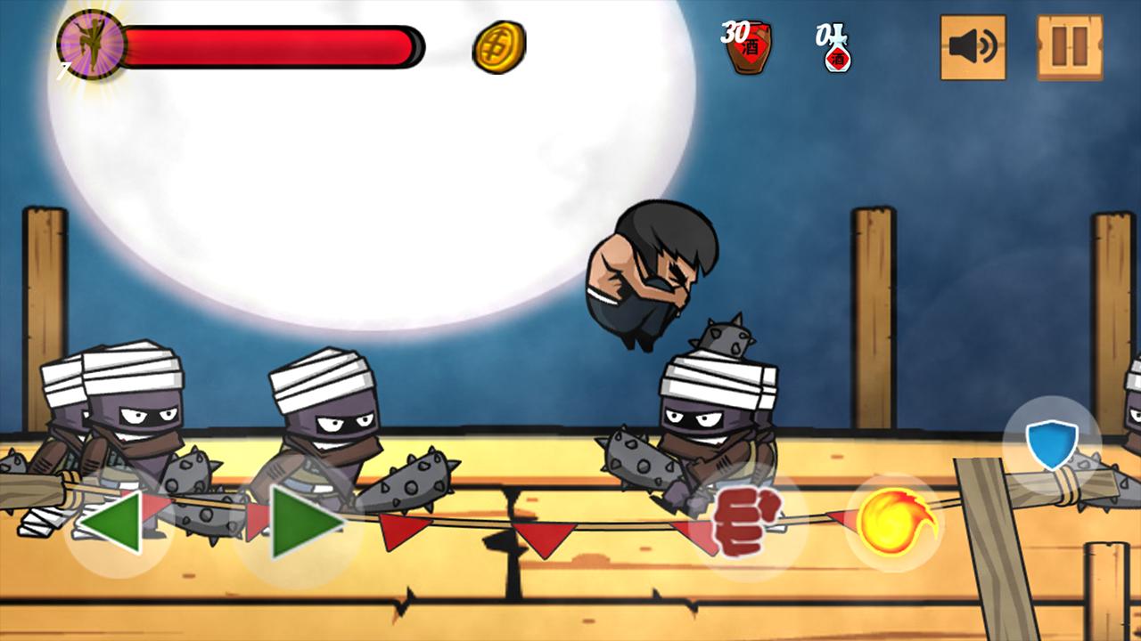 在游戏中,您将被转变为角色Bruce Lee,您必须使用所有技能来克服所有回合。所有5轮安排的上升阶段的难度都有。在每一轮中,都有许多敌人和他们的老板,您必须克服所有敌人。您可以使用硬币购买一些技能,这将帮助您更轻松地通过。
