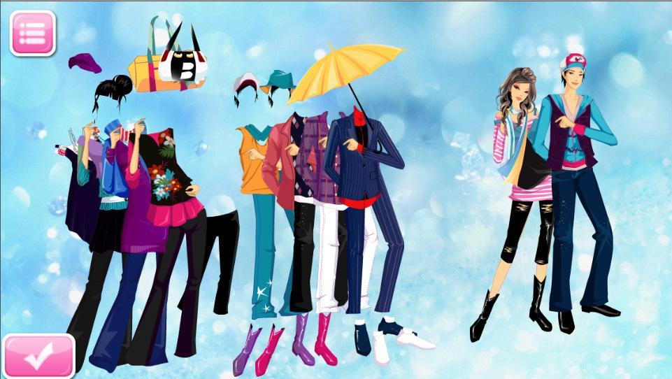 打扮这对夫妇浪漫约会,选择发型,化妆和衣服。