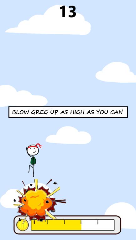 通过“受控”的矿山爆炸,帮助您的高度反射,高度集中和耐力的力量,帮助强硬的家伙炸毁自己。将格雷格吹到下一个平台上,并达到疯狂的高度。但是不要一次失败,或者格雷格(Greg)丢失了,游戏结束了。击败您的“高度点”并提高您的爆炸技巧。在格雷格(Greg)的播出时收集足够的硬币,并获得了四个很棒的动力之一!
