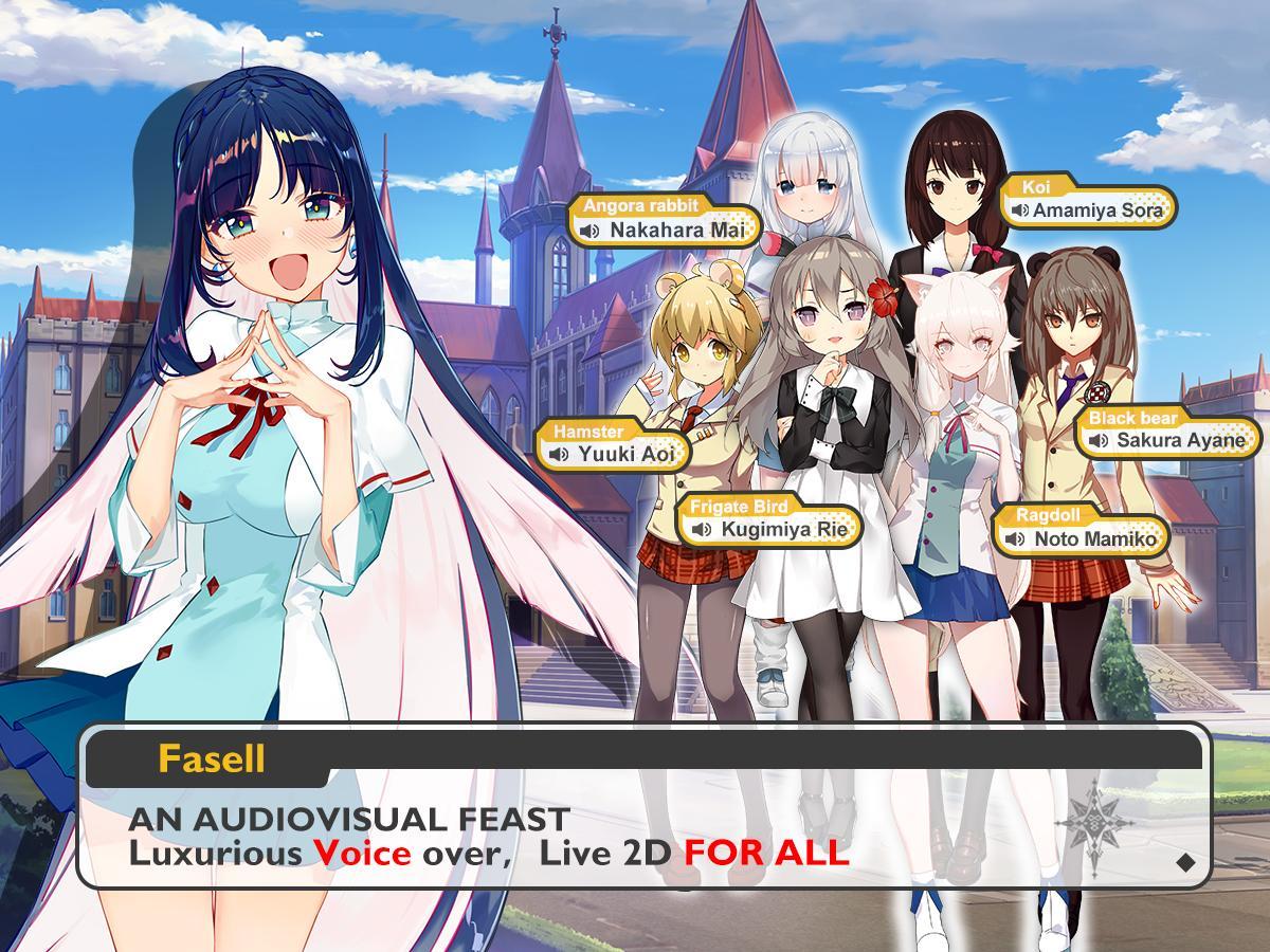 每个角色都有两套制服——校服和战斗服。使用全套Live2D技术和日语配音,观看女孩们在你的手中生活~!