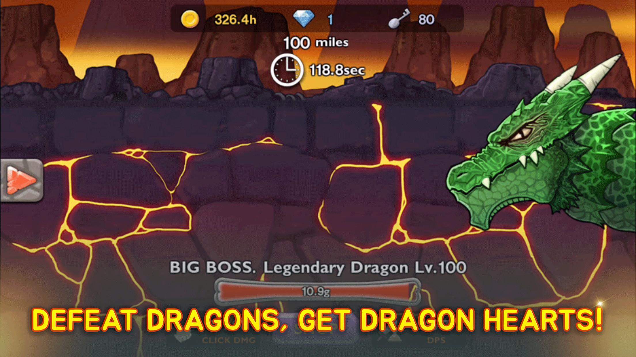 “点击杀死不死的怪物,点击召唤和雇用英雄,然后点击以击败可怕的传奇龙,以获得免费的龙头游戏中的终极奖。