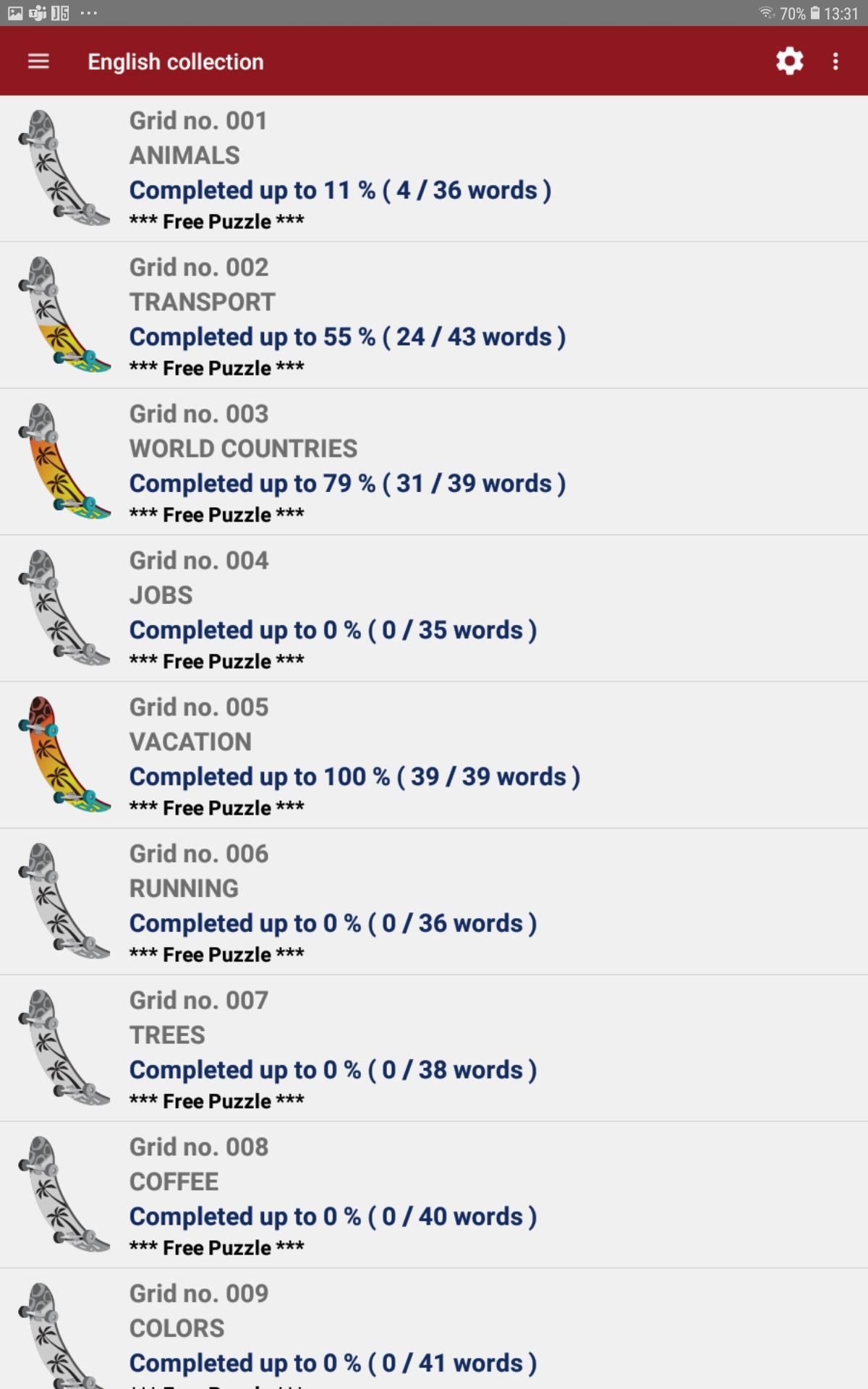 141个单词搜索难题:14个保加利亚难题,34个英语难题,40个法国难题,24个西班牙拼图和29个葡萄牙难题。