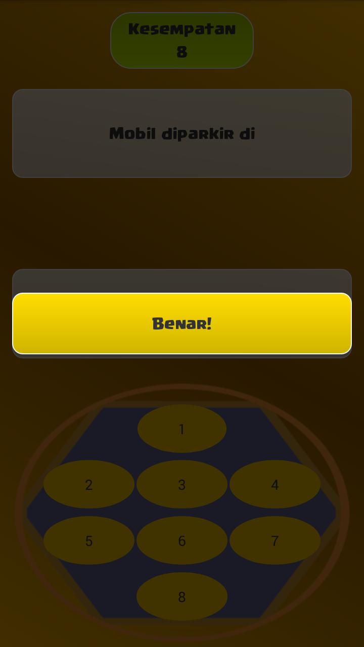 Kuis Kontak ,如果您曾经观看过这个测验表演,您将知道如何。如何玩这个游戏非常容易,您必须回答一些问题。要回答这个问题,您只需要按数字1-8按钮即可。按钮已被随机分配,其内容是将会出现的问题的答案。这个问题并不困难,但是您是否能够集中记住隐藏的答案?