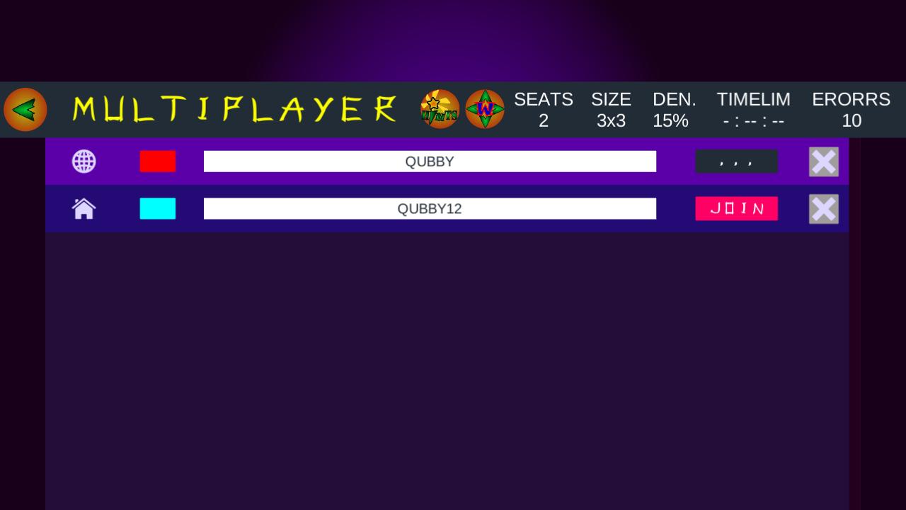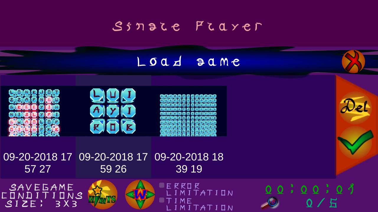 在单人游戏中,您可以保存一个难题以稍后解决。有一个动态的用户排名系统,该系统基于组件评估,例如:平均字段大小,错误等...
