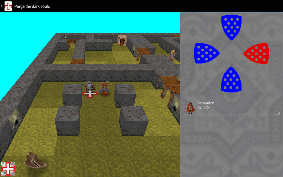 要么从恶魔清除水平,要么奔向出口。当您退出水平时,任何被杀的骑士都会复活;每个骑士都有自己的一套技能。