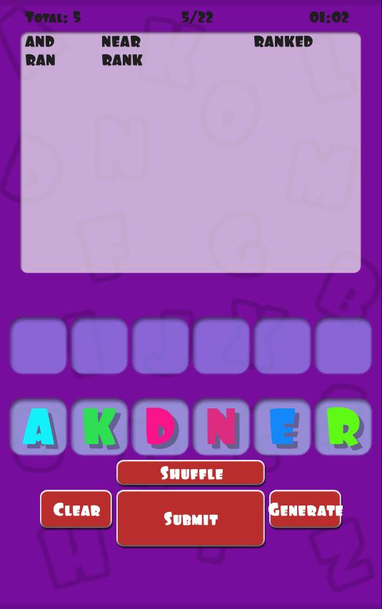 查看您的词汇技能如何在这个有趣的单词搜索游戏中堆叠。在时间用完之前,请找到尽可能多的单词。播放经典至解锁水平或街机以扩展时钟。