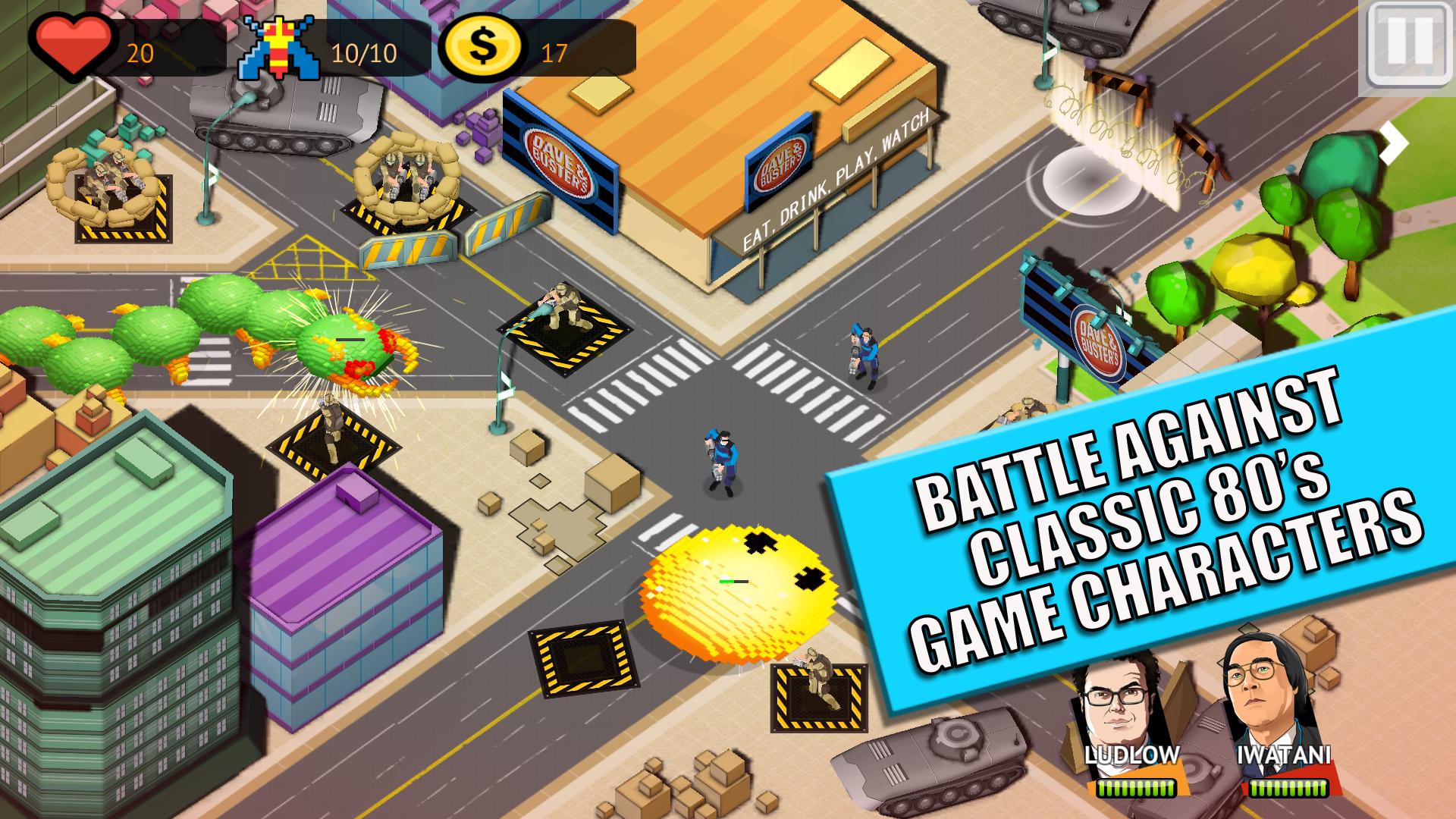 与像素电影中的英雄街机一起播放,这是整个年龄完全免费的伴侣应用程序!在游戏中,第一次与Pac-Man,Centipede,Q*Bert,Frogger以及更多您最喜欢的游戏角色一起玩,该游戏对传统的塔式防御力学进行了创新的转折。