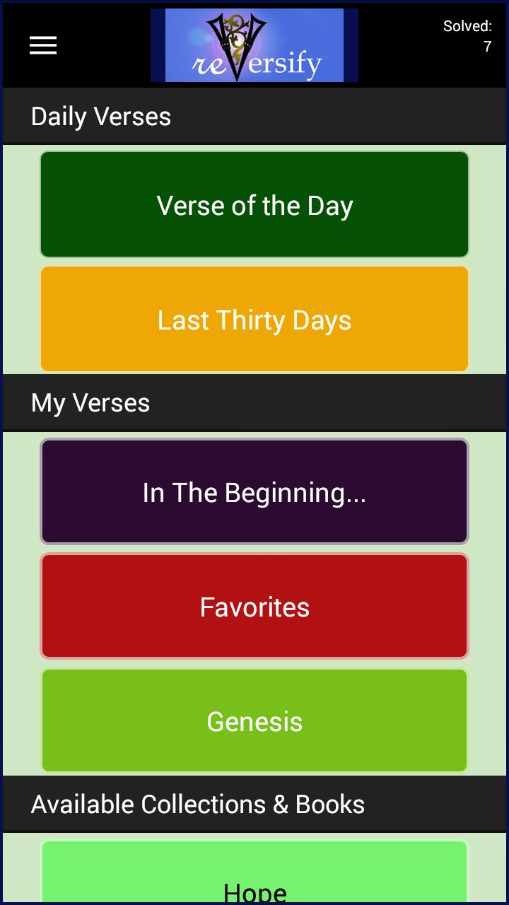 reVersify是一种每天与圣经经文互动的有趣方式...看到单词回到一起是一种特殊的刺激!每天早上都有一天的经文;可以提供诗歌集和圣经的单个书籍,后者可以在应用程序中全部阅读。