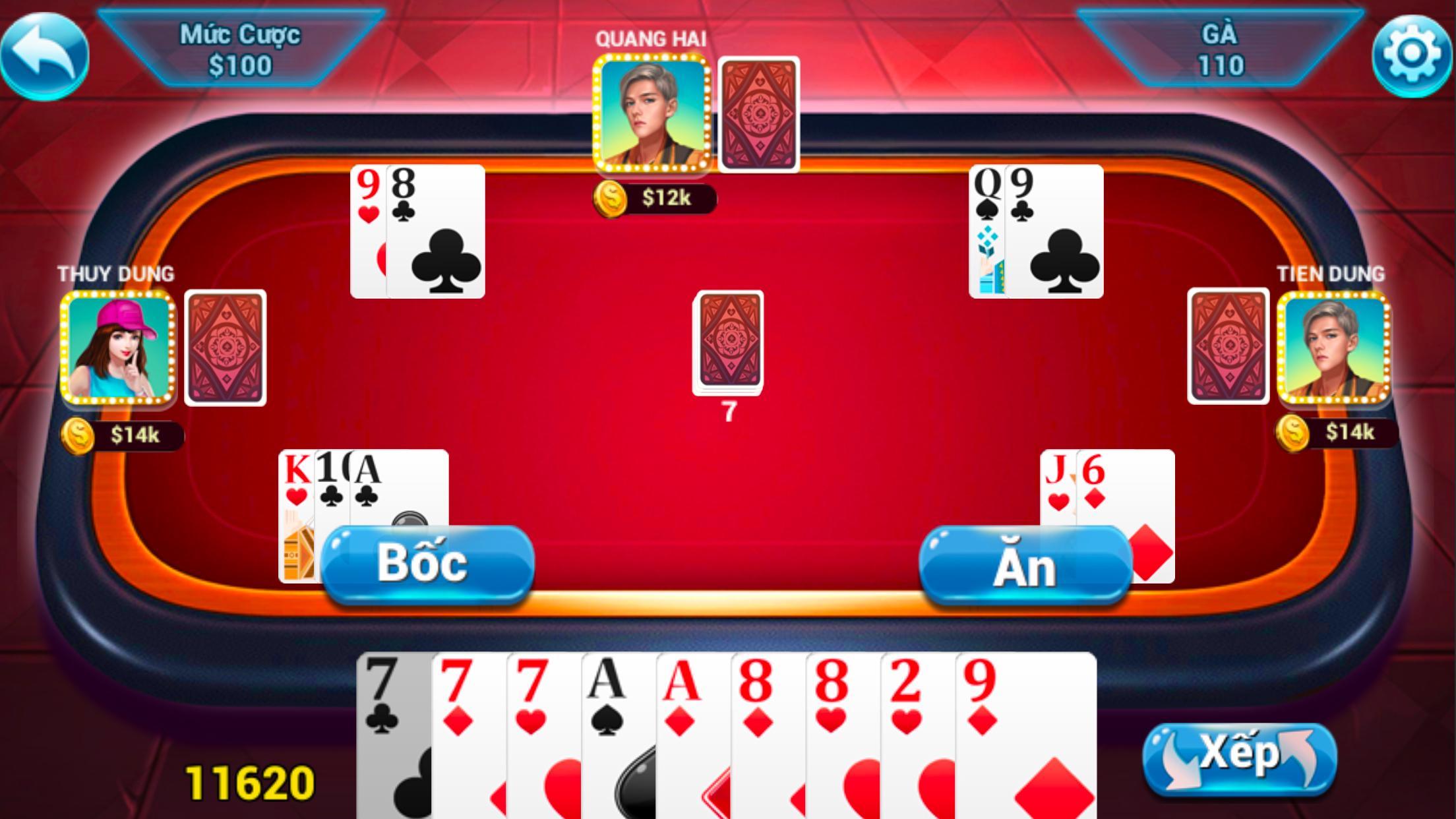TA LA(PHOM)是4个玩家的纸牌游戏。帖子总数52张卡。