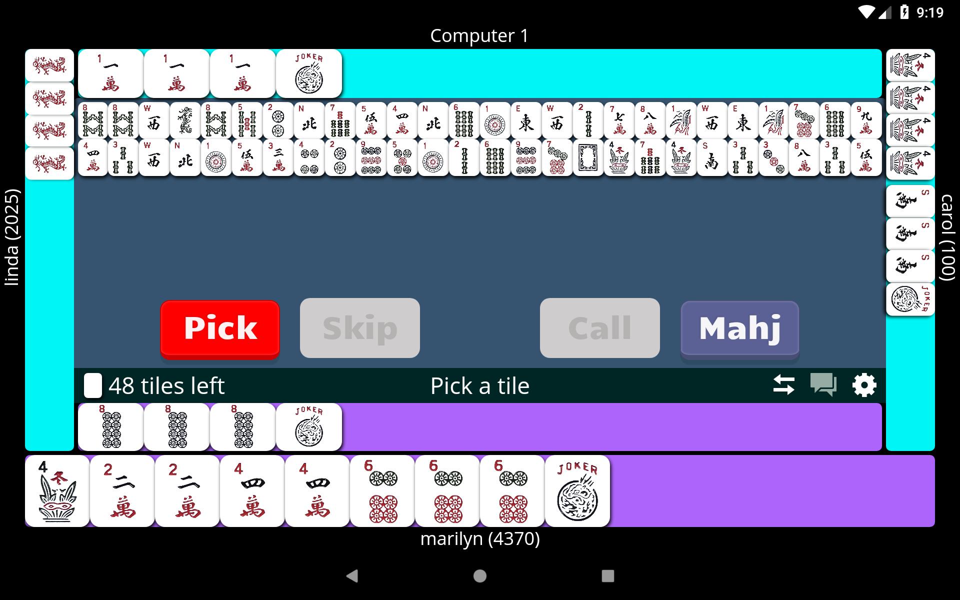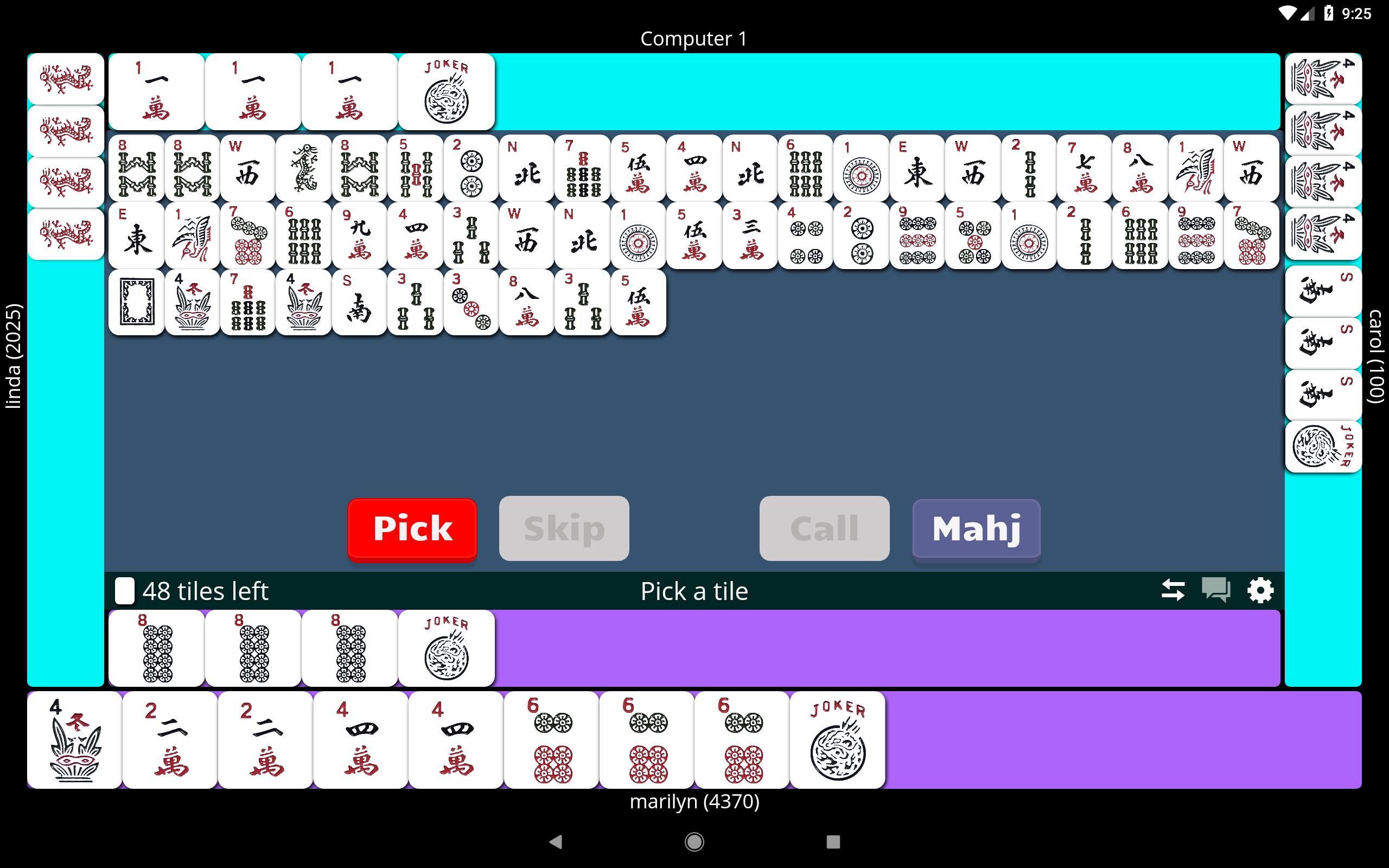 您可以选择自己在计算机上玩耍,这可以帮助您学习卡,改进和提高Mah Jongg技能,或者只是随时随地玩耍。您也可以与世界上任何地方的朋友和家人一起玩,并在我们非常友好的在线社区中结识新玩家。您需要的只是互联网或数据连接。您还可以选择三种不同的速度,因此您可以以最适合的速度进行比赛。