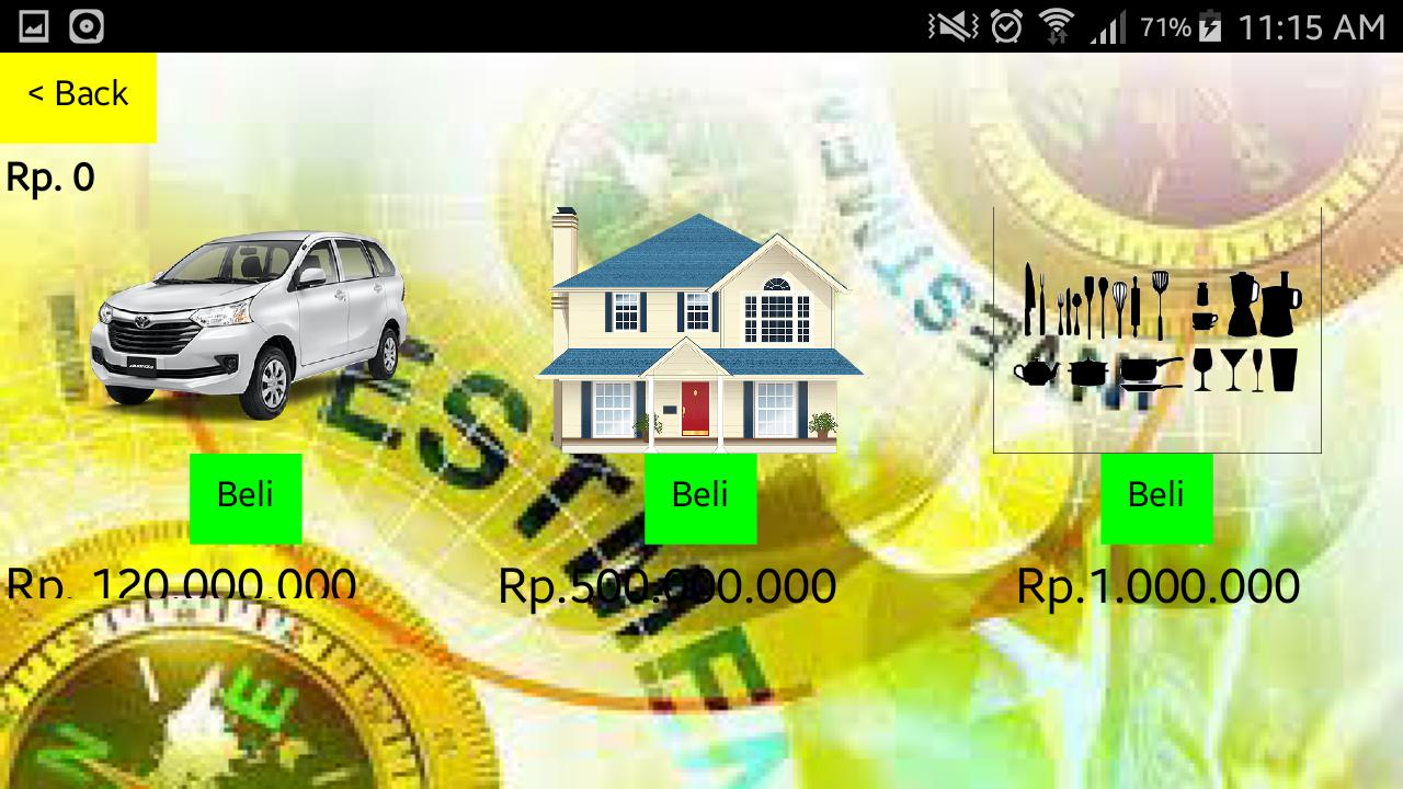 该游戏是关于销售的目标是购买商品/资产(例如房屋);家用电器等