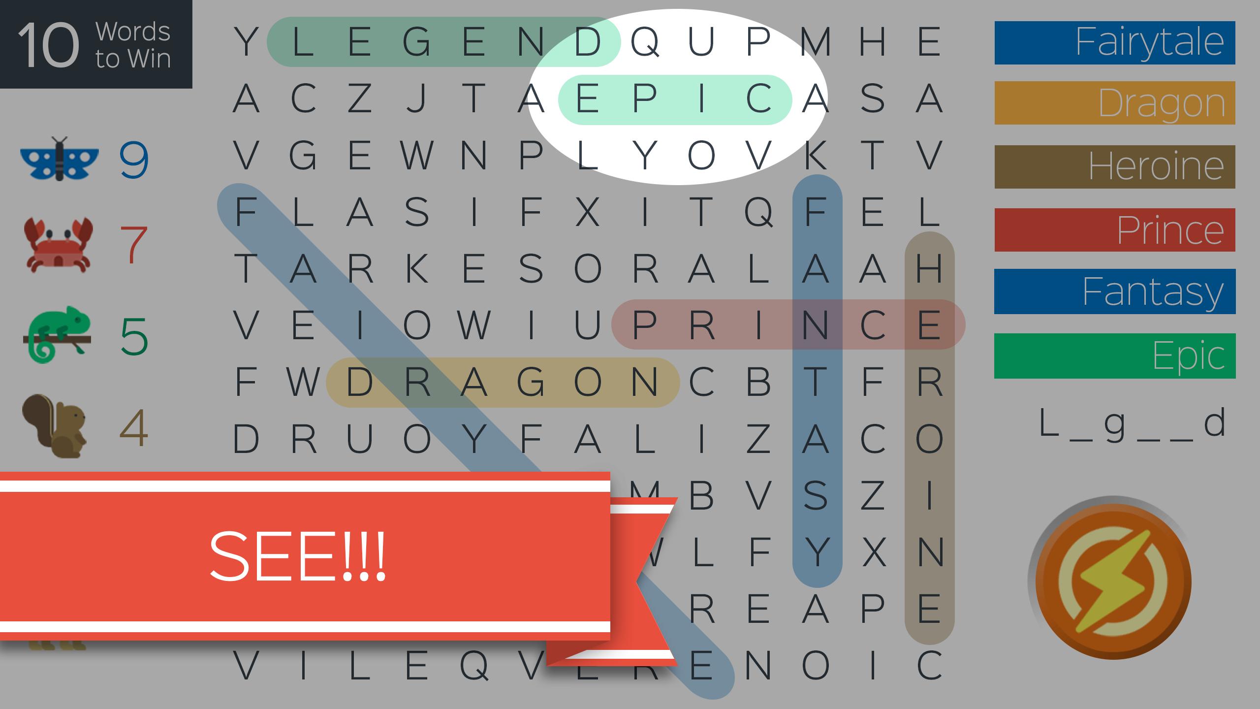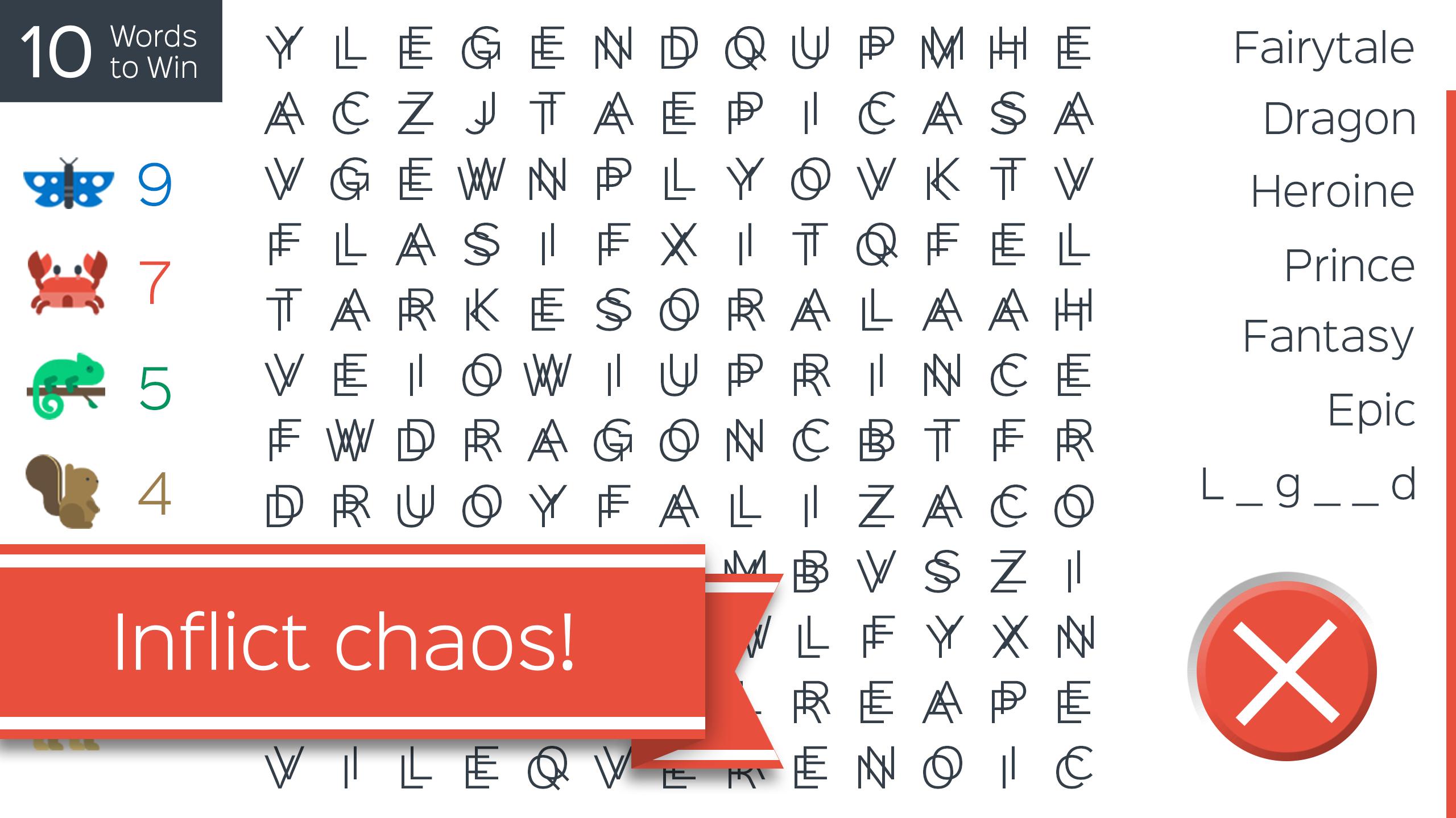 我们保证您从未做过这样的单词搜索!当您通过一轮强烈的单词发现比赛时,您将收集削弱对手的积分和动力。这使我们感到有义务这样做...