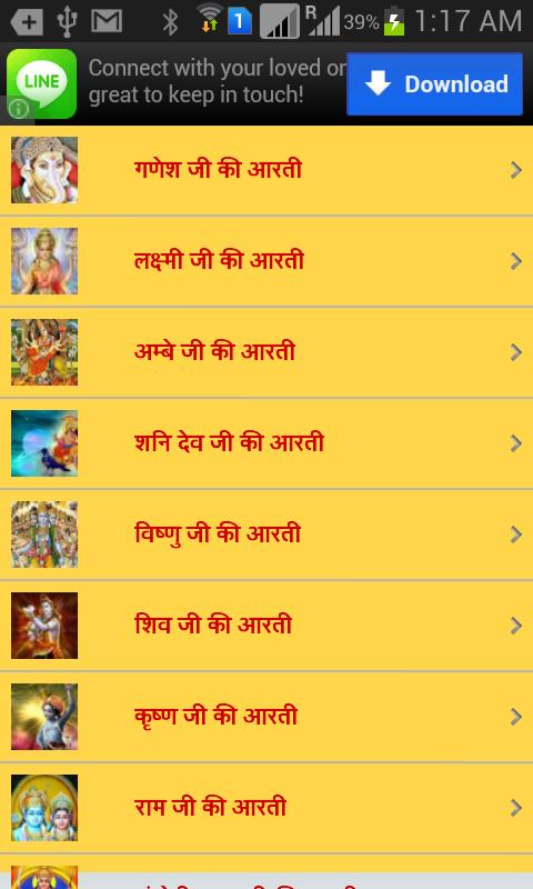 您可以看到以下帶有歌詞的Aartis: