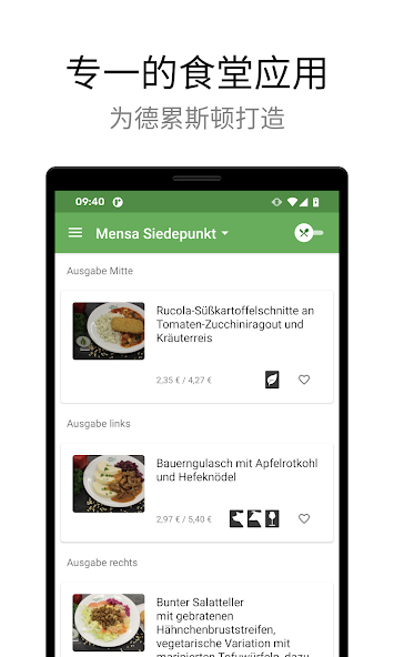 - 簡單而乾淨的方式,可以隨時從您想要的手機中的Dresden,Zittao,Tharandt和Görlitz的學生食堂中進行日常報價。