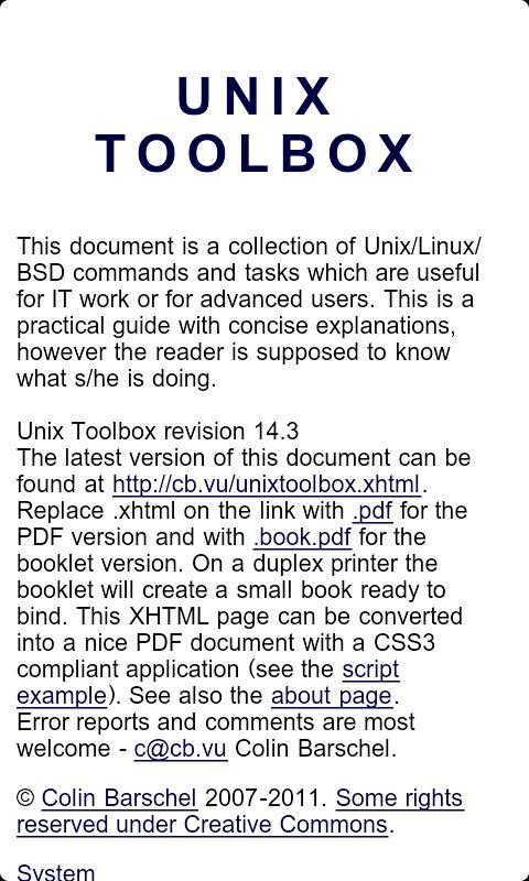 Unix Toolbox是命令和語法的集合,涵蓋了許多任務