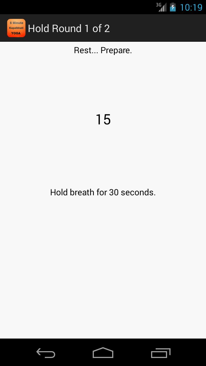 休息並屏住呼吸。可以通過進入設置來增加/減少持續時間