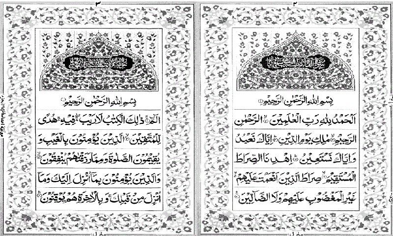 阿拉伯印度語(15行)的聖古蘭語腳本在帶有WVGA(800x480像素)或更大屏幕的設備上一次觀看兩頁的風格腳本。