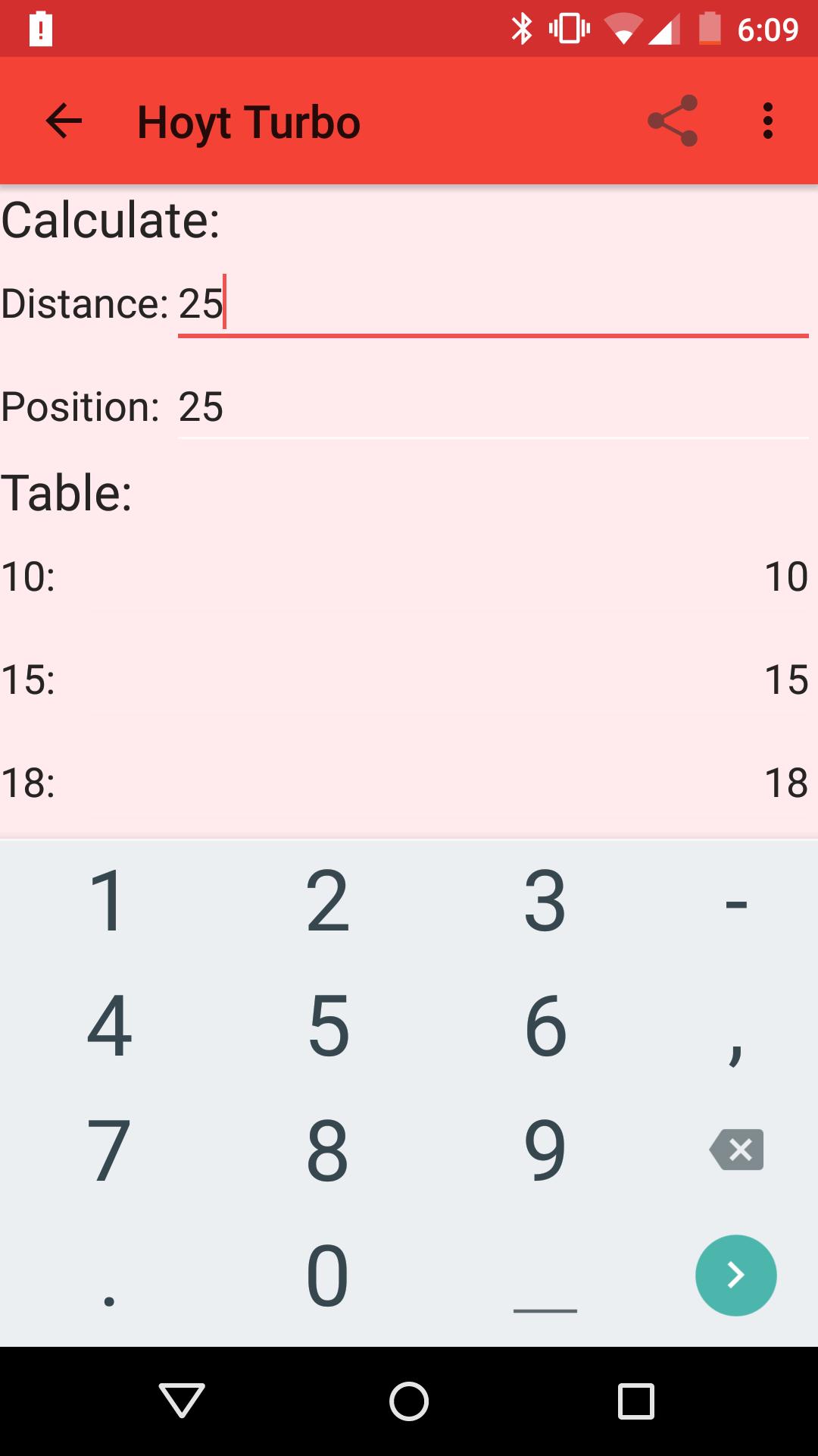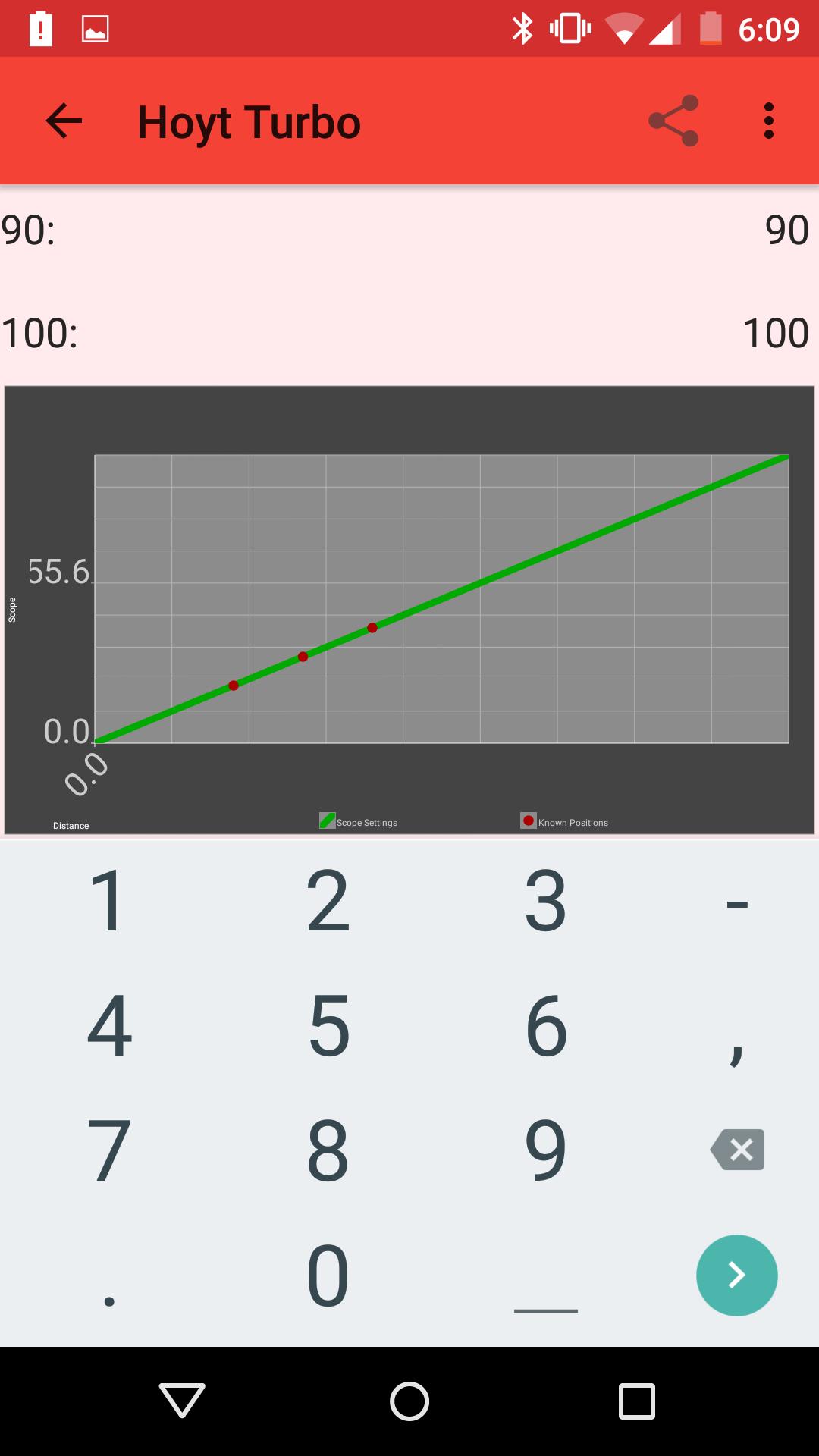 要使用該應用程序,首次打開它時,您單擊(+)符號以添加瞄準鏡。填寫盡可能多的距離/銷設置,然後單擊右上角的刻度。保存後,您將獲得景點列表。單擊視線,它將顯示10-100m的距離表。