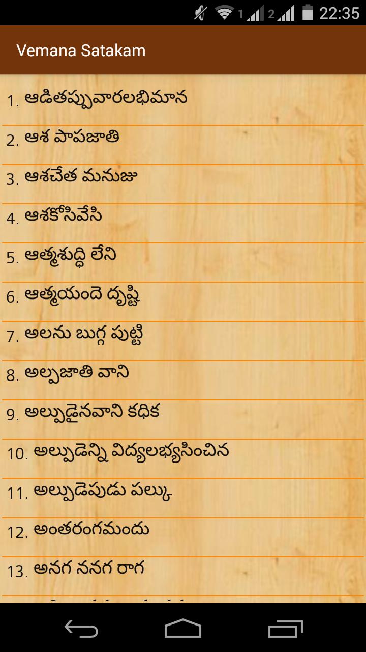 該應用程序可以輕鬆地使用泰盧固語和英語的Vemana Satakam訪問。
