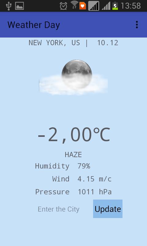 “ Weather Day ”提供了一個在要求時了解天氣狀況的機會。城市用英語輸入。結果如下: