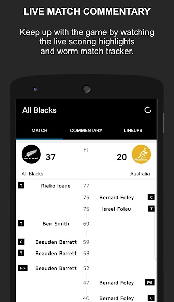 實時匹配屏幕可讓您查看關鍵信息,實時評論,得分更新,陣容,統計信息等等!