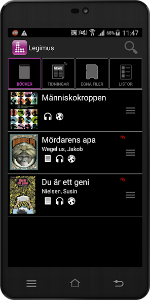 Legimus是一款用於閱讀電話或平板電腦上的講話的應用程序。 Legimus由瑞典媒體MTM發行。