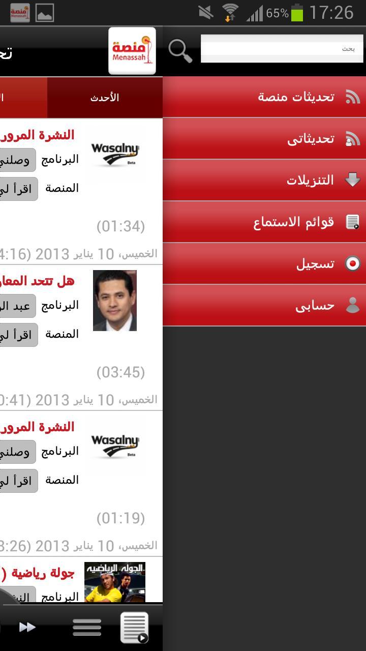Menassah .com為免費用戶提供了一個音頻頻道來發布其音頻內容,並將其出現在Menassah Mobile Multi-Platform應用程序上。
