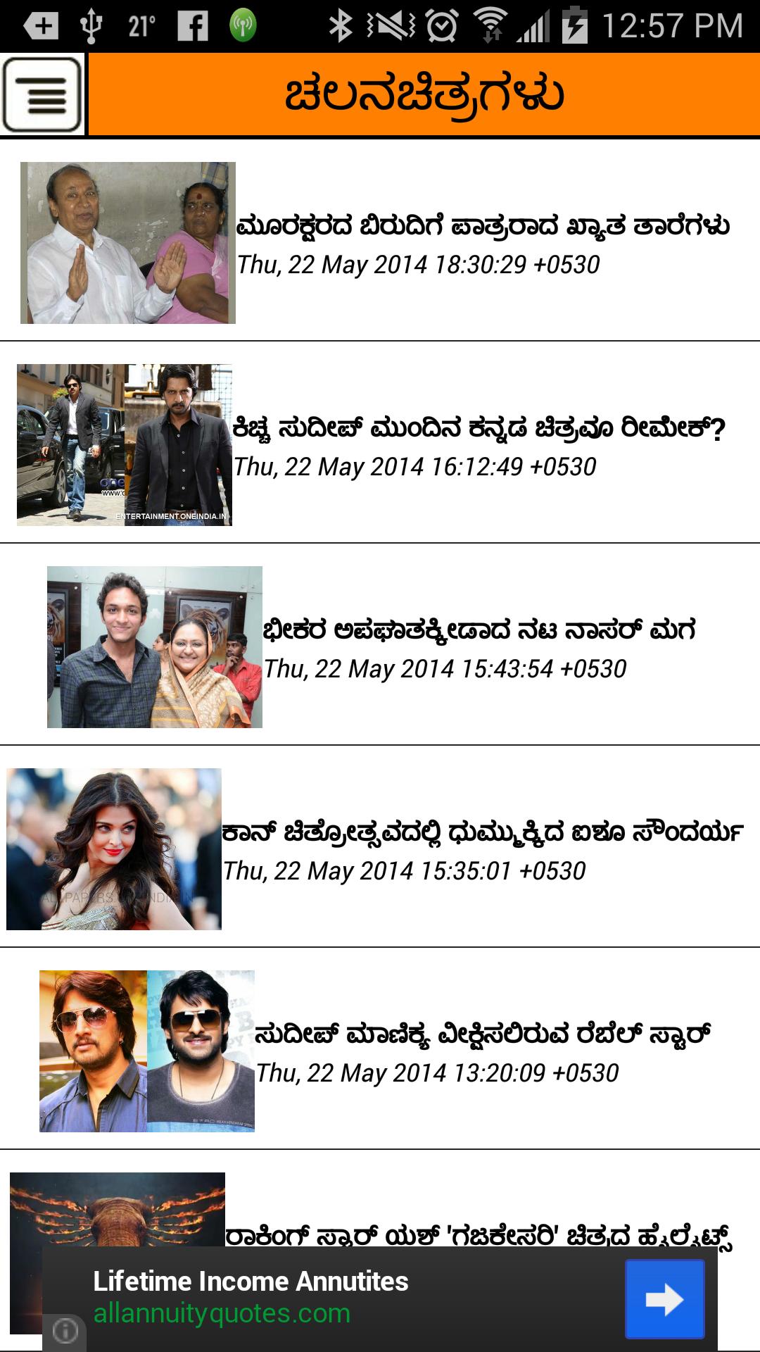 您可以閱讀Karnadaka的最新新聞,來自Kannada Laguage,例如新聞,電影,藝術文化,