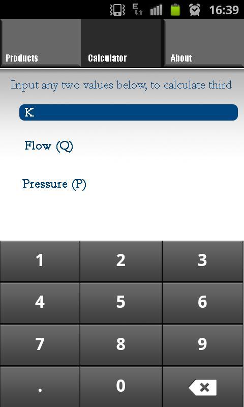 該應用用於借助K值和壓力來計算流量值。在產品清單中,他們的某些產品數量具有定義的K值。