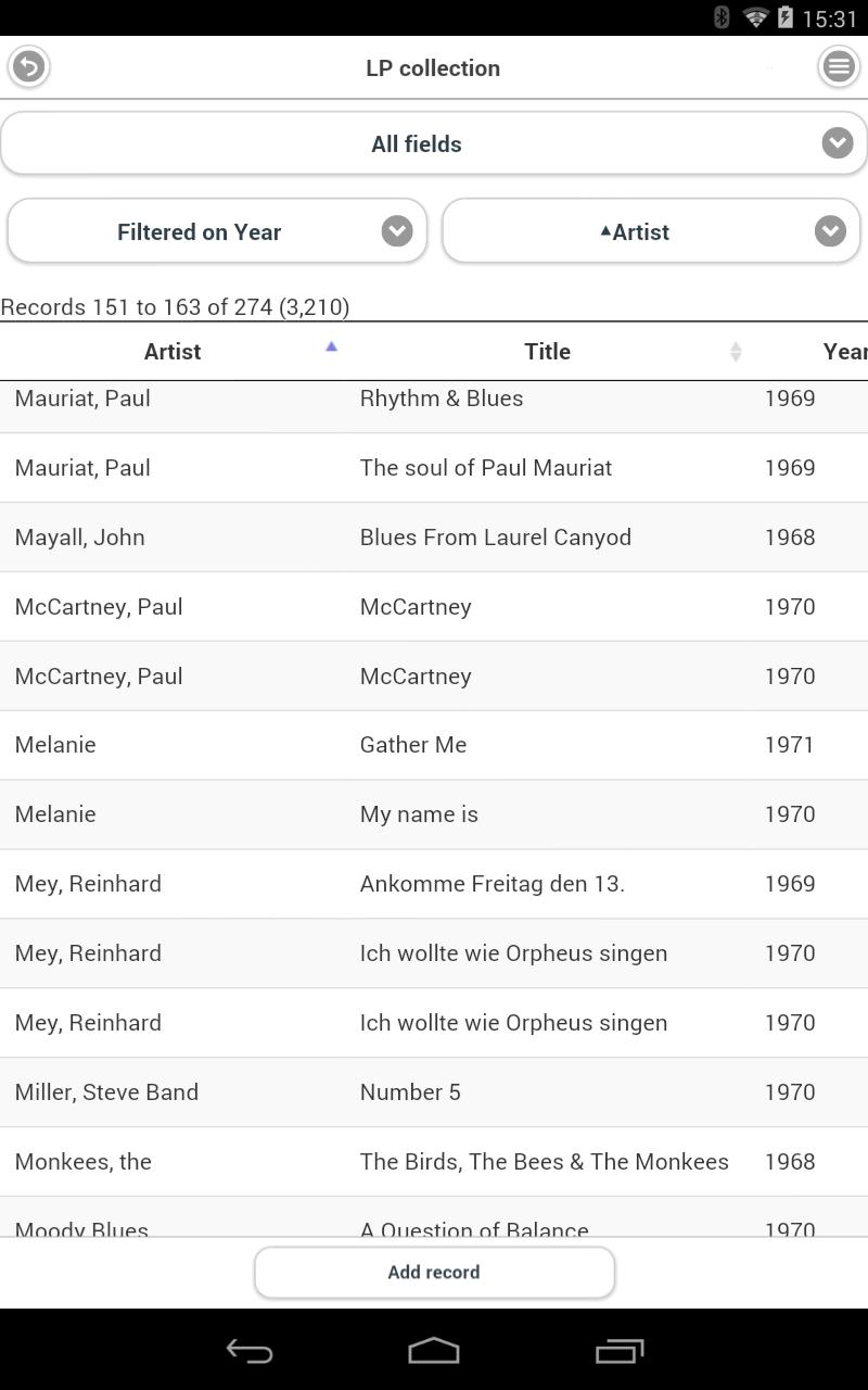 該應用程序在可自定義表中顯示數據庫記錄,並表單視圖共享持久設置以進行過濾和排序。可以通過名稱快速選擇顯示設置,從而輕鬆更改數據視圖透視圖。可以在報告視圖中顯示匯總的計算,例如所選記錄中字段的總或平均值。