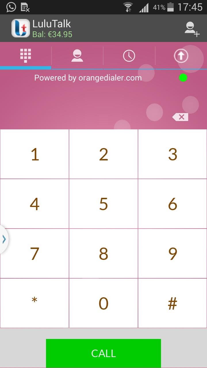 LuluTalk是高級VoIP Service應用程序,允許從任何Android設備進行VoIP調用,並且使用3G/EDGE/WI-FI Internet連接。它的Crystal Clear clear Seach語音質量會感覺到您的服務不同。