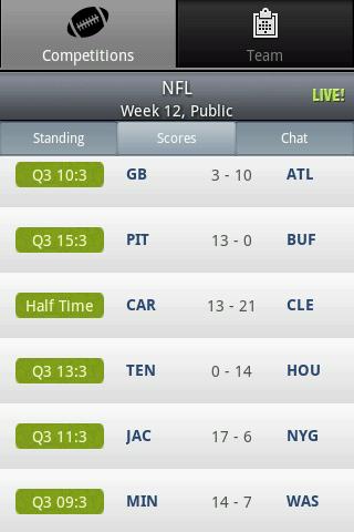 在現場比賽頁面和單一視圖中實時關注您的團隊。