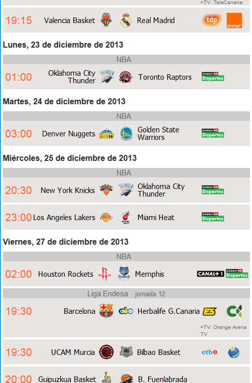 Baskettele Endesa聯賽比賽,NBA等的日程安排和電視頻道。