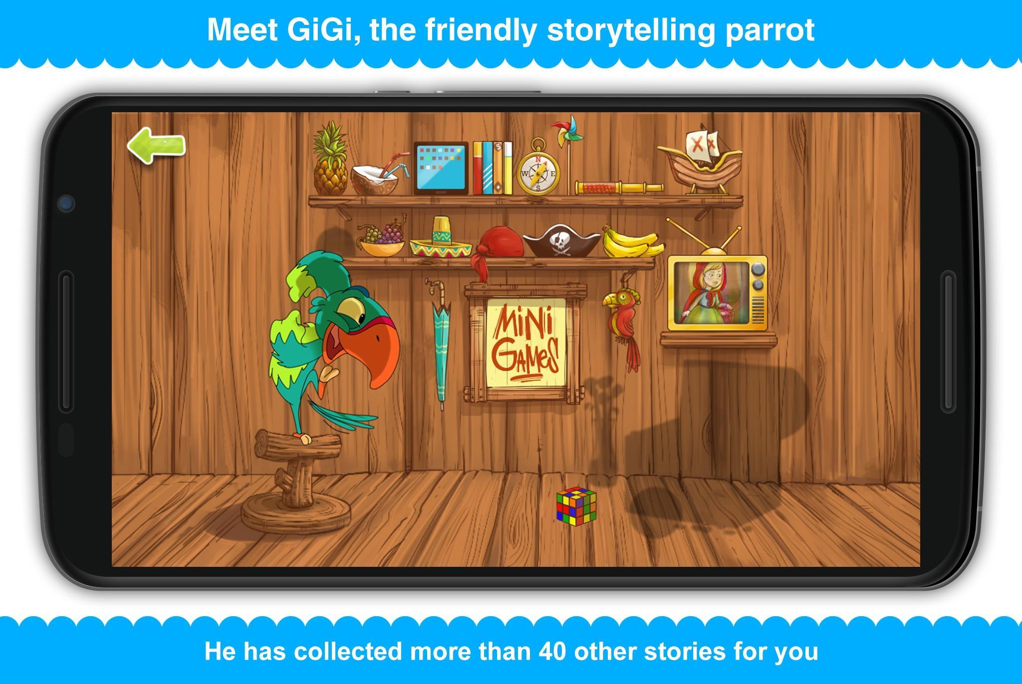 在與Gigi的故事中,您可以找到40多個敘述和插圖的童話故事,例如:Beauty and The Beast,The Beauty and The Beast,The Little Mermaid,Rapunzel,Snow White等。專門設計旨在挑戰孩子們思考和提高閱讀技巧並在此期間獲得樂趣。所有故事和寓言都盡可能精確地保存在原始的經典版本中。認識我們友好的鸚鵡 - 吉吉(Gigi),他將指導您度過講故事的旅程,充滿奇蹟和魔術。