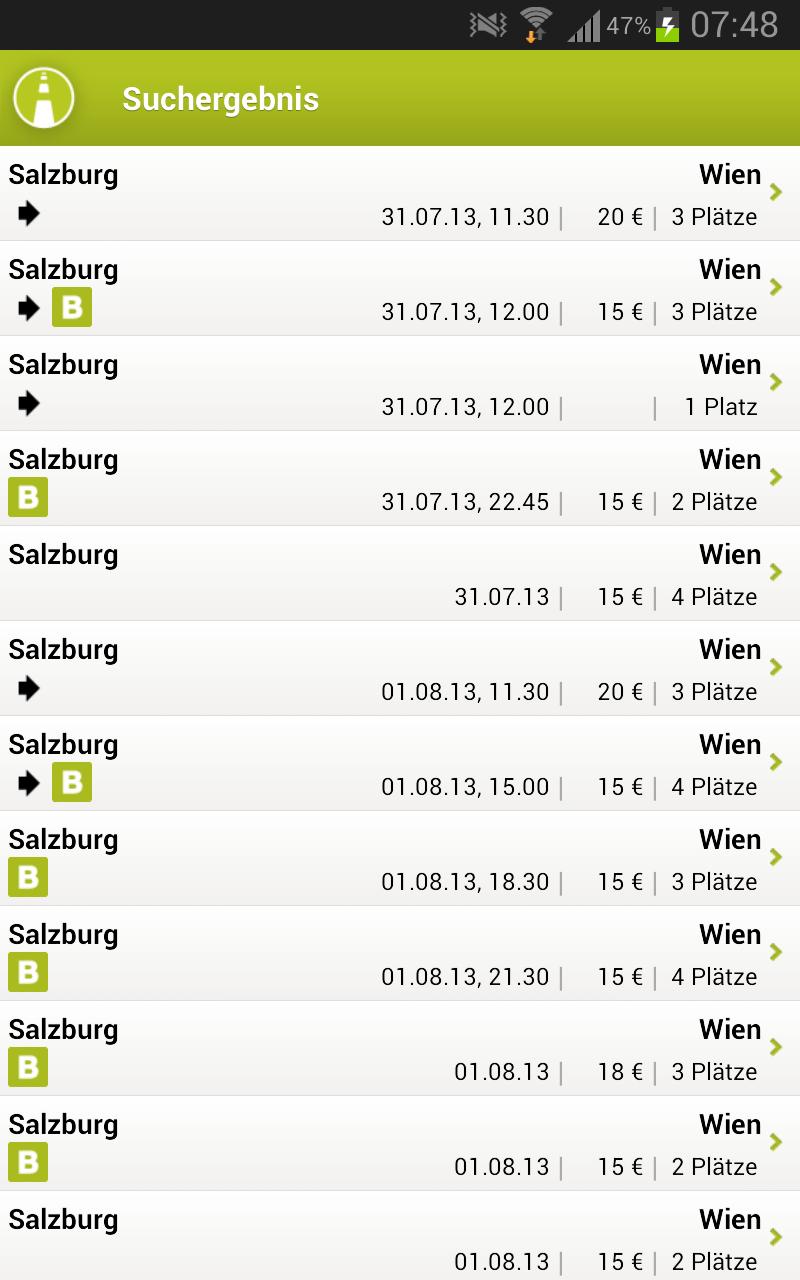 mitfahrgelegenheit.at是互聯網上最大的拼車,可以在奧地利和歐洲進行騎行。每天約有90萬旅行優惠。從維也納到薩爾茨堡的旅行平均售價為15歐元,這是無與倫比的便宜。
