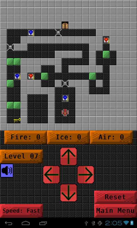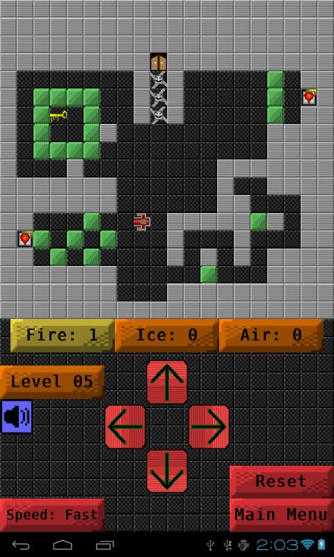 您可以碰到綠色塊以將其推入,然後在遊戲中,您也可以在某些條件下推動敵人。您可以收集三個動力:火,冰和空氣。火力動力融化了任何冷凍的敵人,並摧毀了任何未腐蝕的敵人。冰的動力凍結了敵人,因此可以安全地四處推動。空氣動力使您可以從遠處推動兩個塊和敵人。