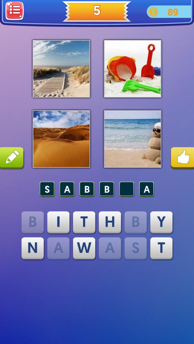 在每個級別中,您會看到4張照片(圖像)。我們必須猜測將它們團結在一起的單詞是什麼。要快速回复,請獲得更多硬幣。這是非常引人入勝的!