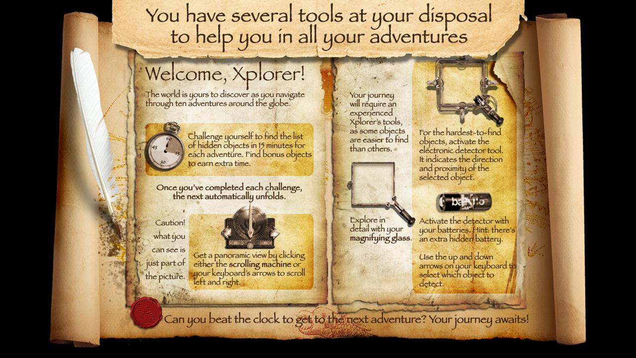 Xplorer是一款令人興奮的遊戲,您可以在全球範圍內瀏覽隱藏的對象。享受一系列十次冒險,每個冒險都有一系列隨機隱藏對象的列表,您要在違反時鐘工作時要發現這些對象。