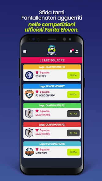 Fanta Eleven是您唯一可以從意甲聯賽,歐洲聯賽和歐洲 /世界杯足球比賽中播放Fanta的應用程序。您也可以在主要的外國聯賽中嘗試:英超聯賽,西甲,德甲聯賽,聯盟1。