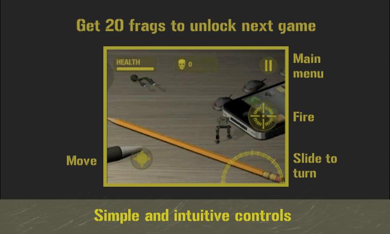 - 迷你陸軍包含10個無限水平 - 不同的小戰場和戰區