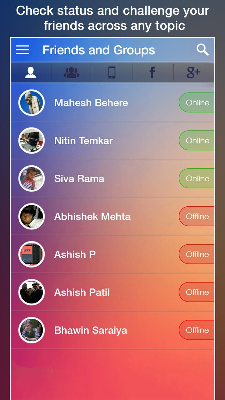哦,朋友- 您可以通過查看其狀態來實時挑戰他們(在線 /離線 /玩遊戲)