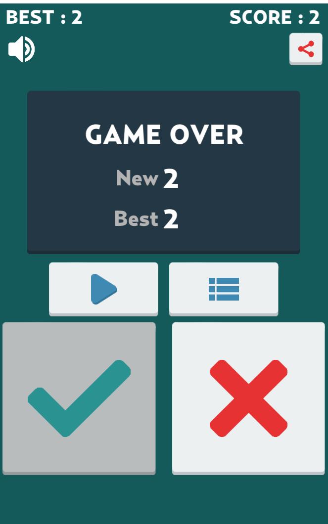 您只有1秒鐘可以回答問題(true /false)。