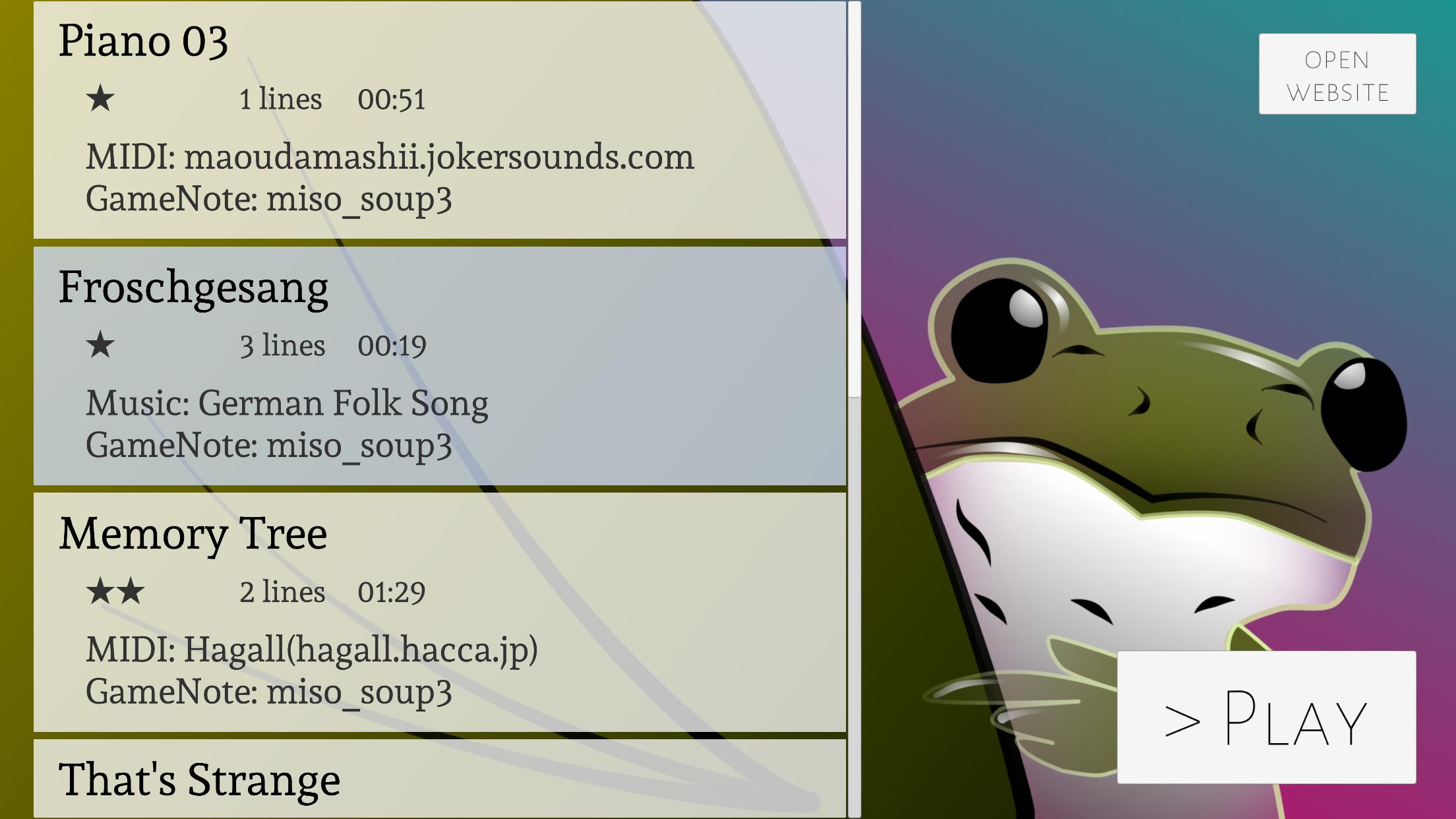 遊戲中使用的歌曲的分數和引文來源在網站上。