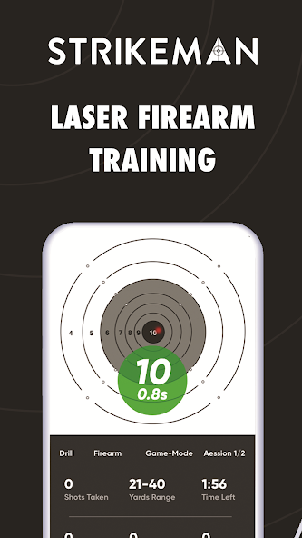 Strikeman應用程序允許用戶無需真正的彈藥就練習拍攝技巧。該應用使用我們的激光子彈,目標和智能手機安裝座記錄目標,並根據激光擊中目標的位置記錄了用戶射擊得分。